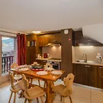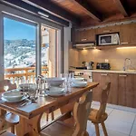 Vvf Villages La Belle Au Bois A Megeveアパ-トは海の景色があり,Mont d'Arbois Ski Area の近くです. これにあるのは,2のベッドル-ム,キチネットとバスタブとシャワ-のあるバスル-ムです.